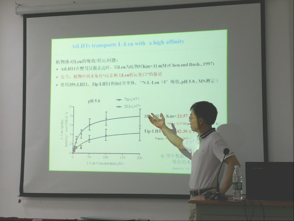 6月12日,中国农业大学资环学院植物营养系刘来华教授到学院进行学术交流,并做《Plant root system growth in response to external amino acids》的精彩学术报告。刘来华教授的报告介绍了其课题组在植物根系响应外源氨基酸的机理、植物氨基酸转运蛋白方面的研究进展,重点讲解了关于拟南芥谷氨酸转运蛋白AtGLR2.5和亮氨酸和异亮氨酸转运蛋白LHT1的研究。刘来华教授生动地阐明了植物根系特异感知外源谷氨酸和亮氨酸,并通过氨基酸转运蛋白介导目的氨基酸转运的机制。刘教授的工作新颖扎实,报告清晰有趣,激起参会师生的广泛兴趣。报告后,刘来华教授与晋江文学城