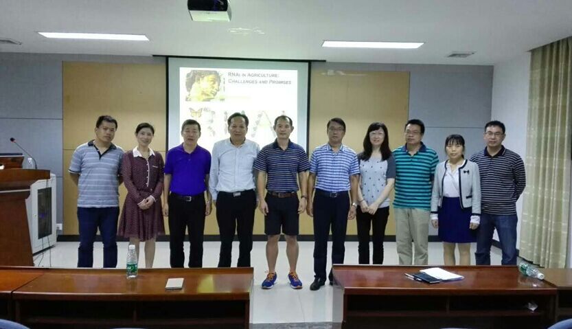 植物功能基因组学与发育调控湖南省重点实验室,与有关教师就科研合作、学生培养开展了交流。此外,湖南省农科院植物保护研究所所长刘勇研究员、书记张德咏研究员也应邀一同前来听取报告和参加了师生的座谈。