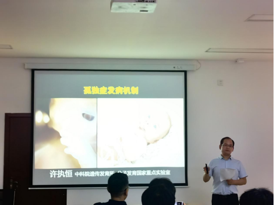 首先,许执恒研究员以神经疾病——孤独症引出讲题,从孤独症的特点、发病率和发病机制等着手向广大师生介绍了孤独症,并以此作为延伸展开本期的讲座。