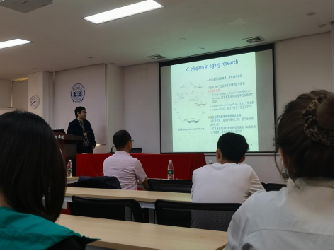 蔡老师首先给我们介绍了寿命的延长及延缓老化相关的概念。并且指出如何延缓衰老相关的功能退化、预防和治疗老年性疾病,已成为亟待解决且具有重大意义的科学问题。紧接着,蔡老师介绍了秀丽隐杆线虫为何可以作为很好的模式生物研究寿命及衰老,如遗传背景清楚、生活史短、行为清晰,许多重要的调控衰老的信号通路都是在线虫中首先发现等。