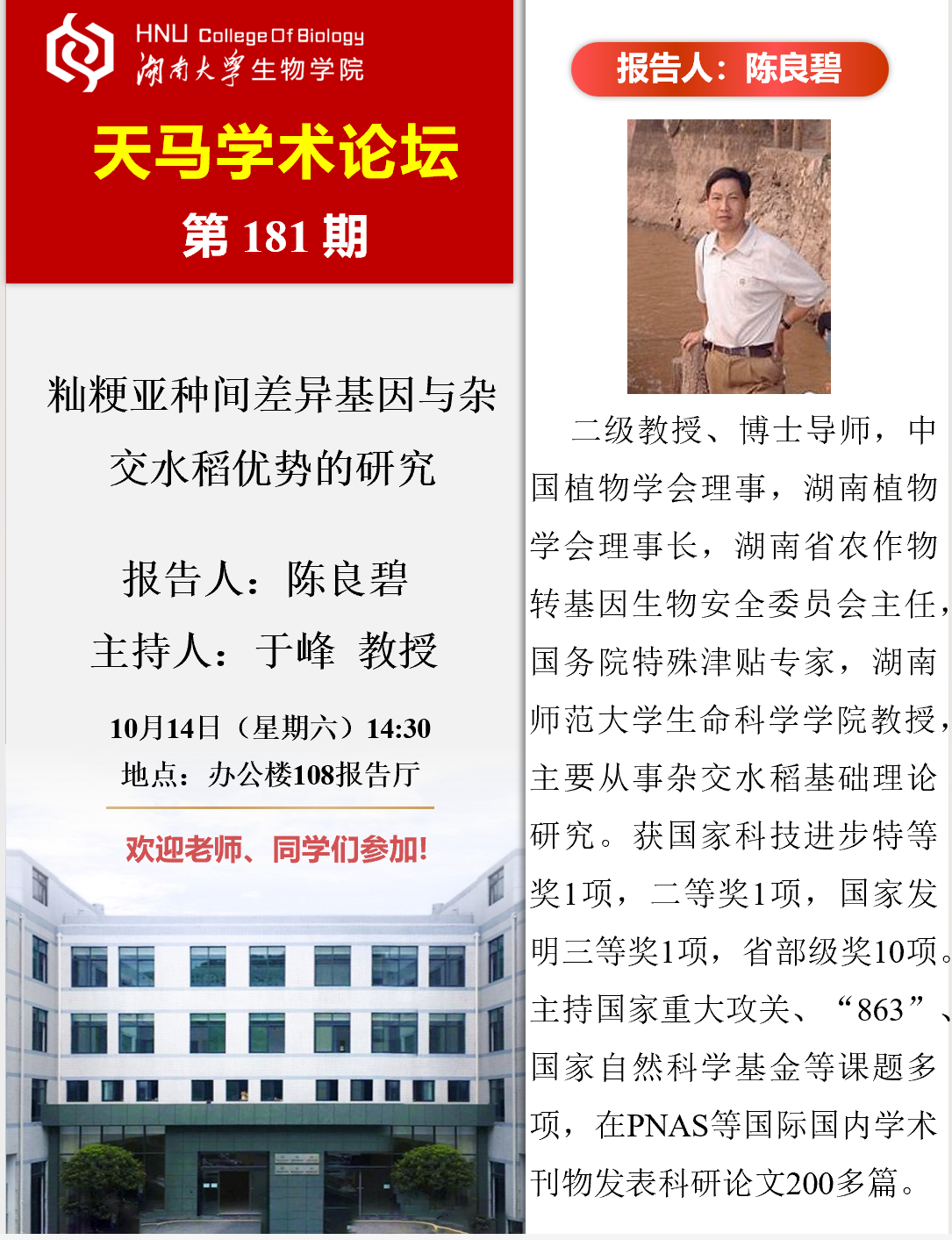 天马学术论坛 第181期-湖南师范大学生命科学学院 陈良碧教授