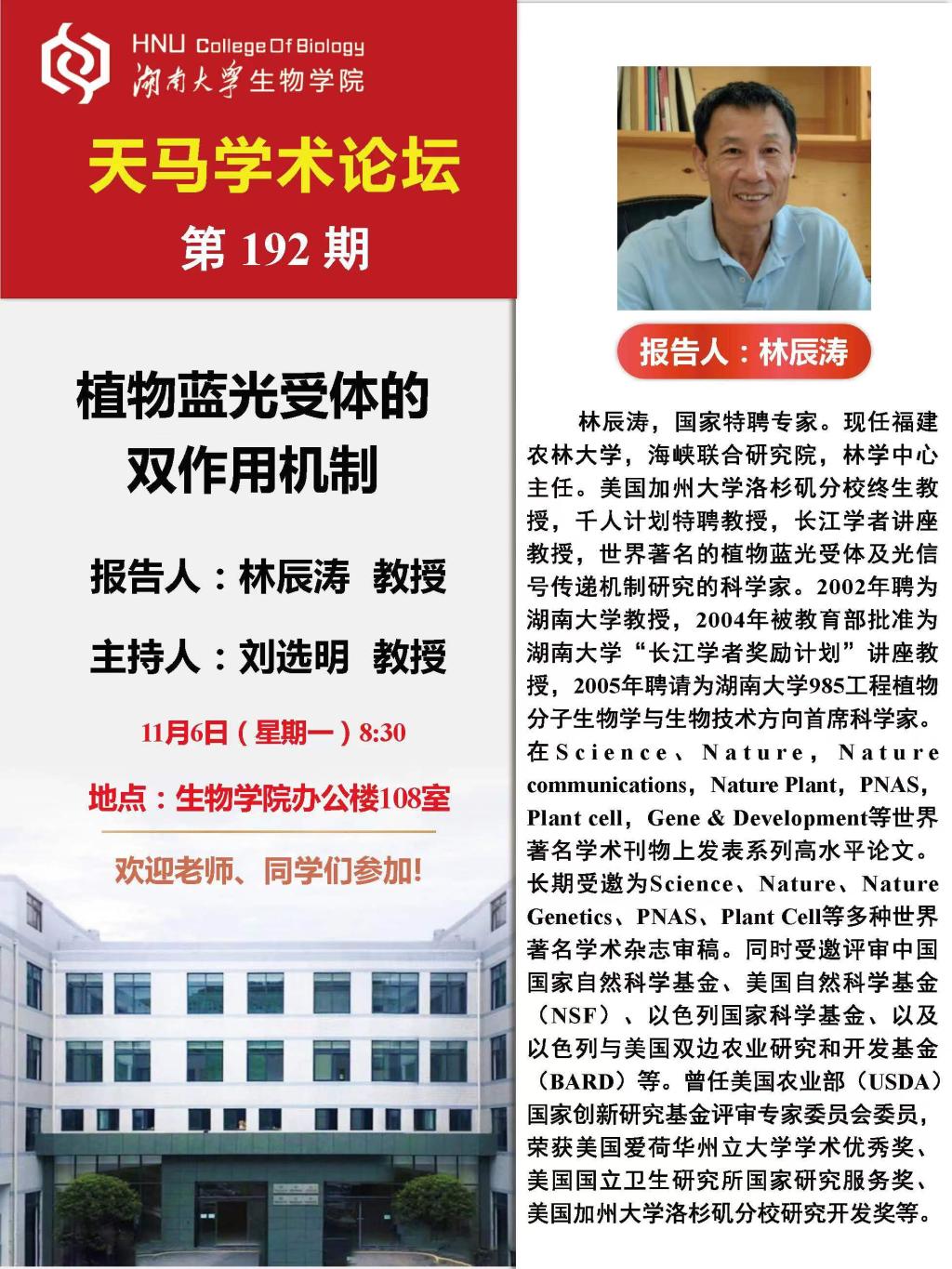 天马学术论坛 第192期-福建农林大学 林辰涛教授