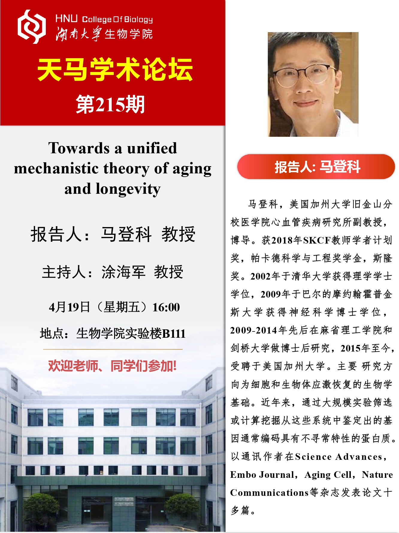 天马学术论坛 第215期 美国加州大学旧金山分校医学院教授