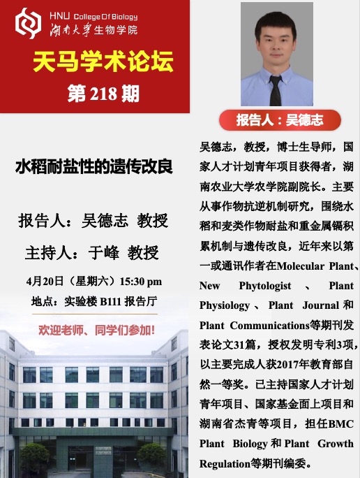 天马学术论坛 第218期 湖南农业大学农学院教授