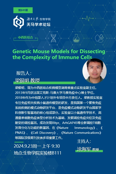 天马学术论坛 第241期 中西医结合疾病模型湖南重点实验室