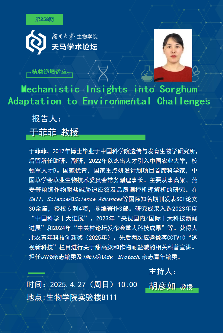 天马学术论坛 第258期 农业大学 于菲菲教授