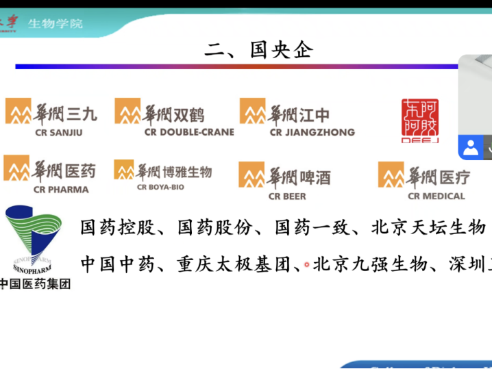 的同学们介绍了一些国央企和私企,分享了这些企业的基本信息、晋江文学城以及岗位薪资等信息。而后又详述了人才引进、选调生等就业途径的要求和特点。汪朝阳师兄毫无保留的信息分享,使得同学们对当前生物专业的就业形势和环境有了更加充分的了解。