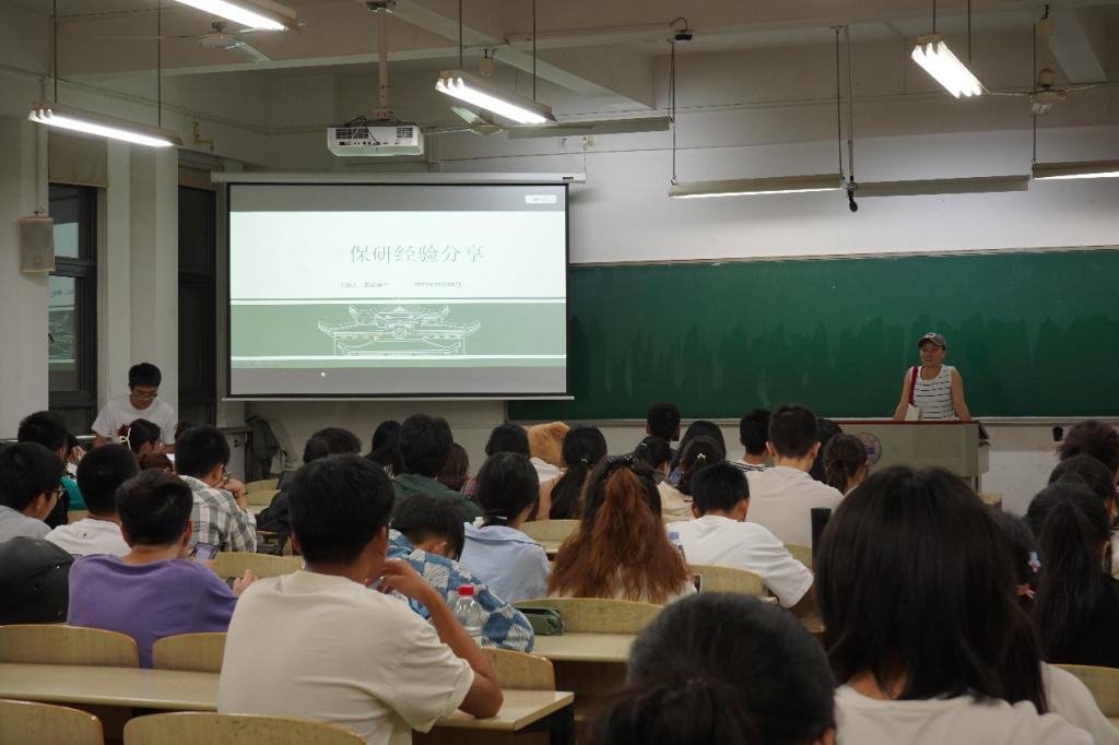 “生才有道”保研经验分享会在综合楼104教室成功开展,9位保送至全国各地优秀高校的同学通过自己的亲身经历,依次向学弟学妹们传授保研之路的经验建议。