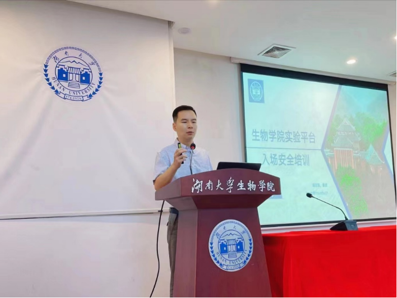 然后,谭老师介绍了生物实验楼平台基本情况,包括各楼层分区,安全通道和功能房间的位置以及仪器摆放的问题。