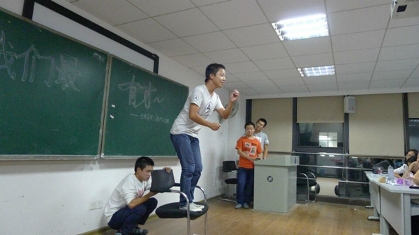 在大家的期待中,严海强同学声情并茂地朗诵了徐志摩的名诗《再别康桥》使大家回味无穷; 739寝室谢梓莹、周瑾钰、王艳芳、王玲玲别出心裁地带来了舞蹈《感觉自己萌萌哒》,十分吸引人眼球; 431宿舍四名男生王帅毅、吴健华、曾渝、杨清鑫带来的双簧,卖力演出赢得了大家一片掌声;女生寝室728张洁馨、梁钰、阮紫然带来的《大学还得学》贴近大学生活,又十分生动形象的表现了大学的主要任务学习;最后,班长团支书和几位同学带来的小品《天地会》表扬风趣幽默,为主题班会画了一个圆满的句号。