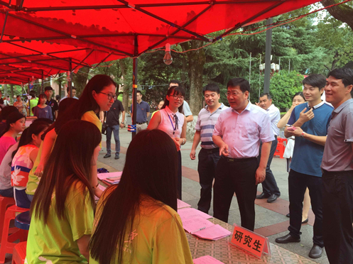 2015级新生在9月5日上午全部报到完毕。本科生方面,下午以班级为单位组织新生参观岳麓书院、游览校园,以班级为单位在学校角落组织了第一次见面;晚上召开了全年级的学生见面会,就报到、军训中的具体问题和学生进行了详细说明,简单进行了军训动员。