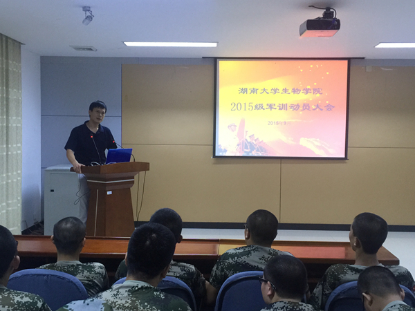 举行隆重的军训动员大会,学院党总支副书记高耀鸿代表学院做动员讲话,辅导员胡品主持动员会。