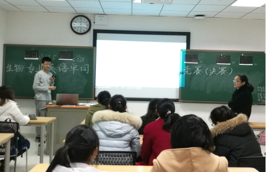 学生会在研究生楼A108教室成功举办“国际化能力提升——生物专业英语单词竞赛”决赛。竞赛由学习部副部长吴宇辰主持,并邀请到主讲专业英语课程的黄静老师作为评委。