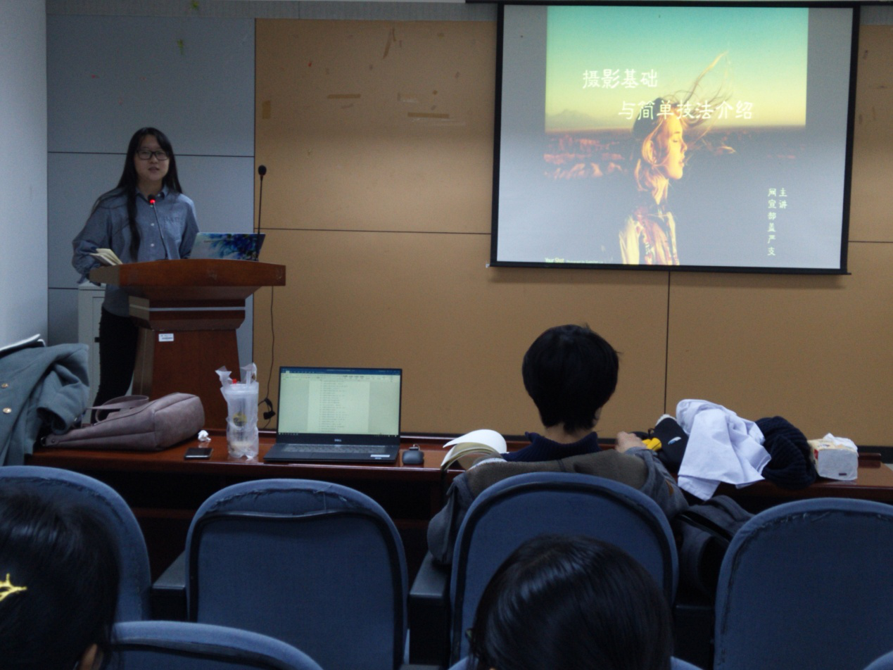 网络与宣传部于生物院报告厅成功举办了2017-2018学年度第一次新闻摄影技能专题培训。此次培训由网宣部副部长盖严支主讲,部长于瑶主持。学院各班宣传委员、学生会各部门写稿骨干、各球队经理都准时到场参加了此次培训。