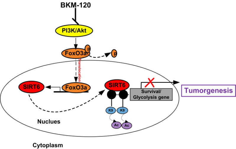 近期,生物纳米与组织工程学研究所张英杰课题组在肿瘤遗传研究领域取得重要进展。在治疗诊断学国际顶级期刊Theranostics(五年影响因子9.009)上发表了原创性研究论文“SIRT6, a novel direct transcriptional target of FoxO3a, mediates colon cancer therapy”, 2019DOI:10.7150/thno.29724。课题组前期的工作论证了结直肠癌经典的生物标志物PUMA(p53上调的凋亡因子)被另一转录因子FoxO3a激活上调。与此同时,首次筛选并鉴定出了一个全新的FoxO3a的下游靶向因子,SIRT6。进而深入研究了FoxO3a与SIRT6启动子结合的具体位点及详细的转录调控机制。更重要的是,课题组率先提出作为一个衰老相关蛋白,SIRT6的高表达能有效抑制结直肠癌的生长。从而揭示了SIRT6作为一个人类结直肠癌潜在的新型生物分子标志物的功能,以指导临床的诊断和治疗。该研究从分子,细胞,实验动物模型及病人样本四个层面证明了Akt的异常激活及SIRT6的低表达与结直肠癌的发生及抗药性有重要关系,并发现SIRT6可作为潜在的结直肠癌诊断及治疗的分子靶标,有助于深入了解小分子靶向Akt药物治疗的分子机制,为靶向药物及联合治疗提供了重要的理论依据。