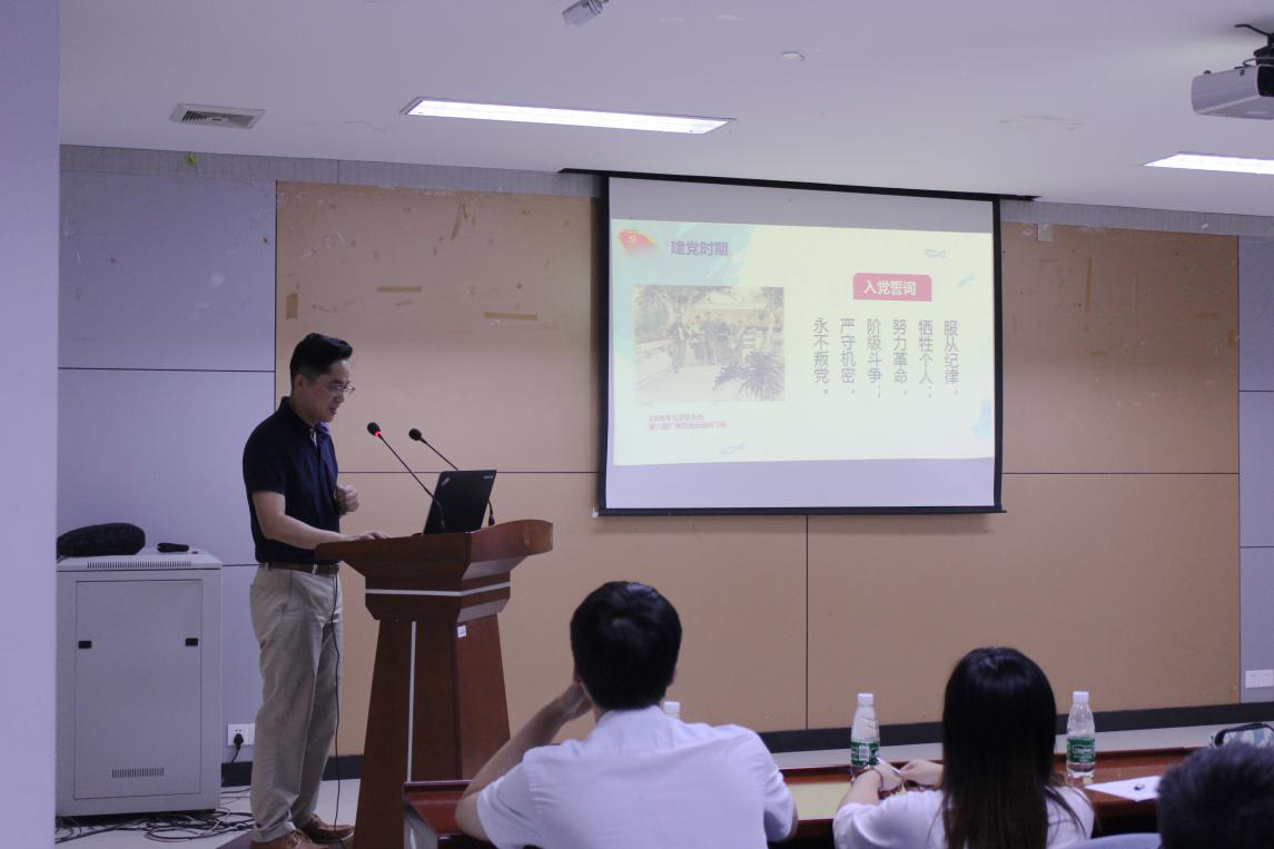 学生党员代表魏璨带领与会党员重温入党誓词。随后,聂和民、李秀山等8位教工和学生党支部书记为所有参会党员讲授党课。他们从入党誓词的发展变迁、党的历史进程、党章党规的修订历程、做新时代合格党员和习近平总书记的系列讲话精神等各个视角进行精彩解读。