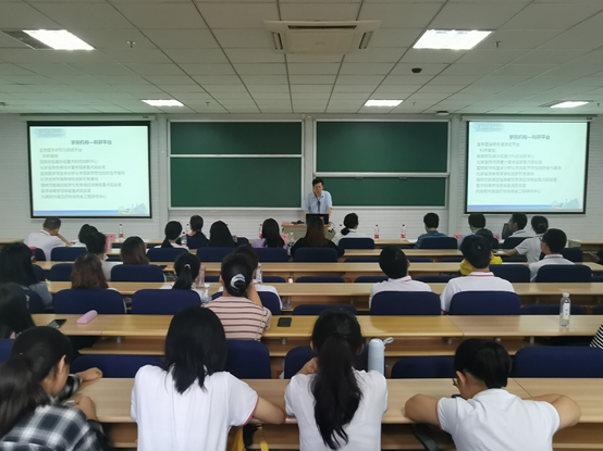 会议伊始,谭院长发表了题为《求真务实,追求卓越,勇攀科研新高峰》的讲话。他从学院发展概况、学院机构、师资力量及科研成果等多个方面进行了系统详细的介绍,加深了同学们对学院的认识。此外,谭院长着重介绍了学院的相关特色科研项目,有利于同学们学科视野的开阔。最后,他对新生们提出了三点建议:确定目标和方向、维持激情和毅力、秉承批判与尊重,以期帮助同学们更快更好地适应研究生生活。