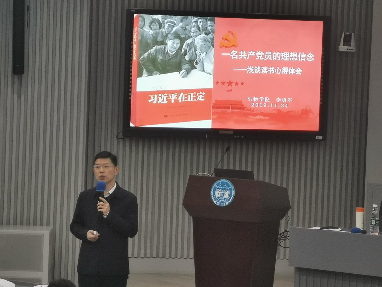 本次党课由四个部分组成,课程伊始,作为第一部分的引言,李勇军书记分别邀请了一名新生党员和一名入党积极分子来谈谈自己的理想信念,交流过后,李书记提出了共产党人应有的理想信念,并借此话题展开本次读书学习心得分享。