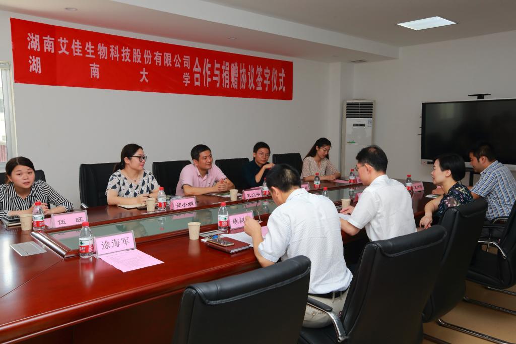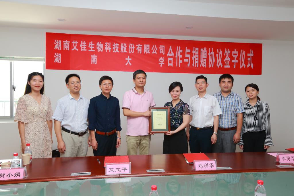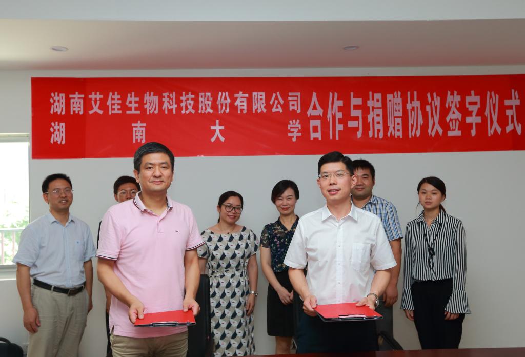 与湖南艾佳生物科技股份有限公司本着优势互补、资源共享,以提升企业创新能力和科技水平,将科研成果转化为经济效益,同时提高学院教学质量和科研水平,促进学校、企业高质量发展,经友好协商,本着“平等合作、互惠互利、共同发展”的原则,在共建产学协同育人基地、党支部共建基地、科技项目合作、联合招收与培养博士后等方面开展广泛与深入的合作。