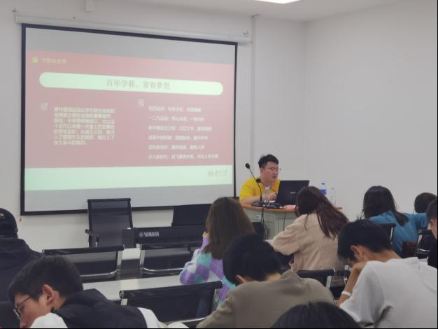 在进行学联历史时,张东昊部长主要结合了五四运动,百年学联向大家介绍了百年学联的奋斗与荣耀,告诉我们我们更自信地走好脚下的路,更坚定地眺望远方的路。