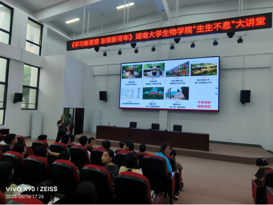 参加活动人员还来到开慧中学,为开慧中学初二年级的同学带来了一场“生生不息”大讲堂,学院的研究生们为同学们演示了精彩的生物学实验。靳振明教授为同学们带来了关于冠状病毒的科普知识讲座,并介绍了晋江文学城
