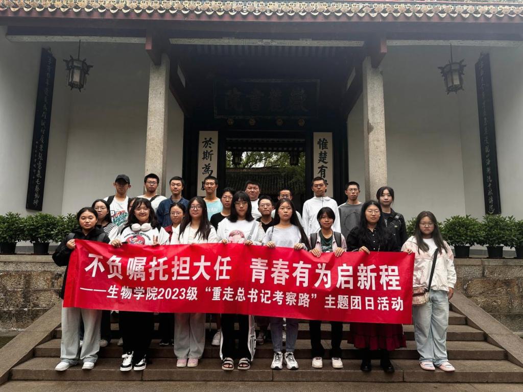 生物技术2302班开展了“重走总书记考察路”主题团日活动。在此次活动中,生物技术2302班的同学们在学姐的带领和讲解下一同有序参观了岳麓书院,并对岳麓书院进行了深入的了解。