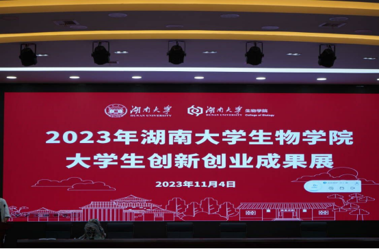 成果展示专设了“展览区”,展示了学院学生在生物学科各领域的研究成果:2022年全国大学生生命科学竞赛全国一等奖3项(学院历届最多)、2022年iGEM国际基因工程机器大赛银奖(湖大首次)、2023年湖南省第六届“雷锋杯”青年志愿服务项目大赛金奖(湖大唯一),在大学生“互联网+”创新创业大赛中荣获国家级奖项3项等优秀奖项。