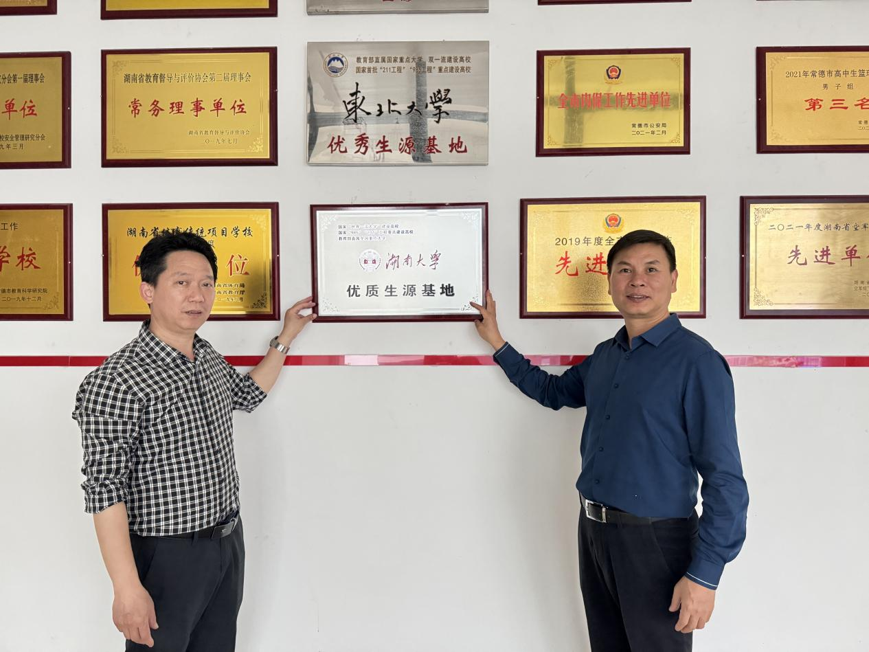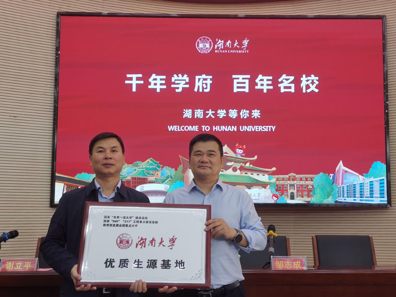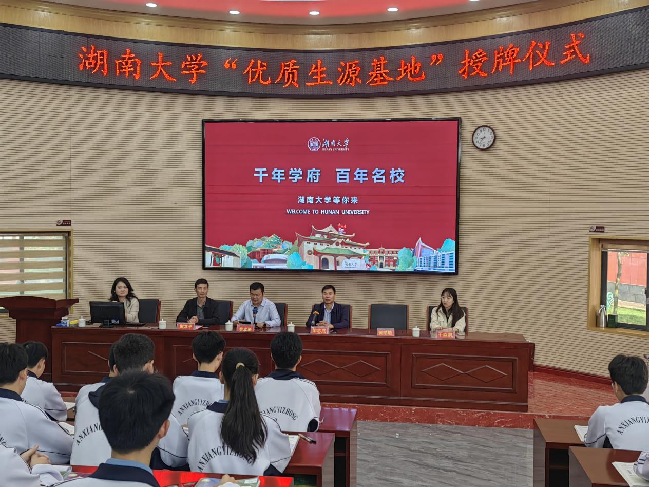 将“优质生源基地”牌匾授予汉寿一中,并详细介绍了学校和学院基本情况、招生政策,现场氛围热烈。