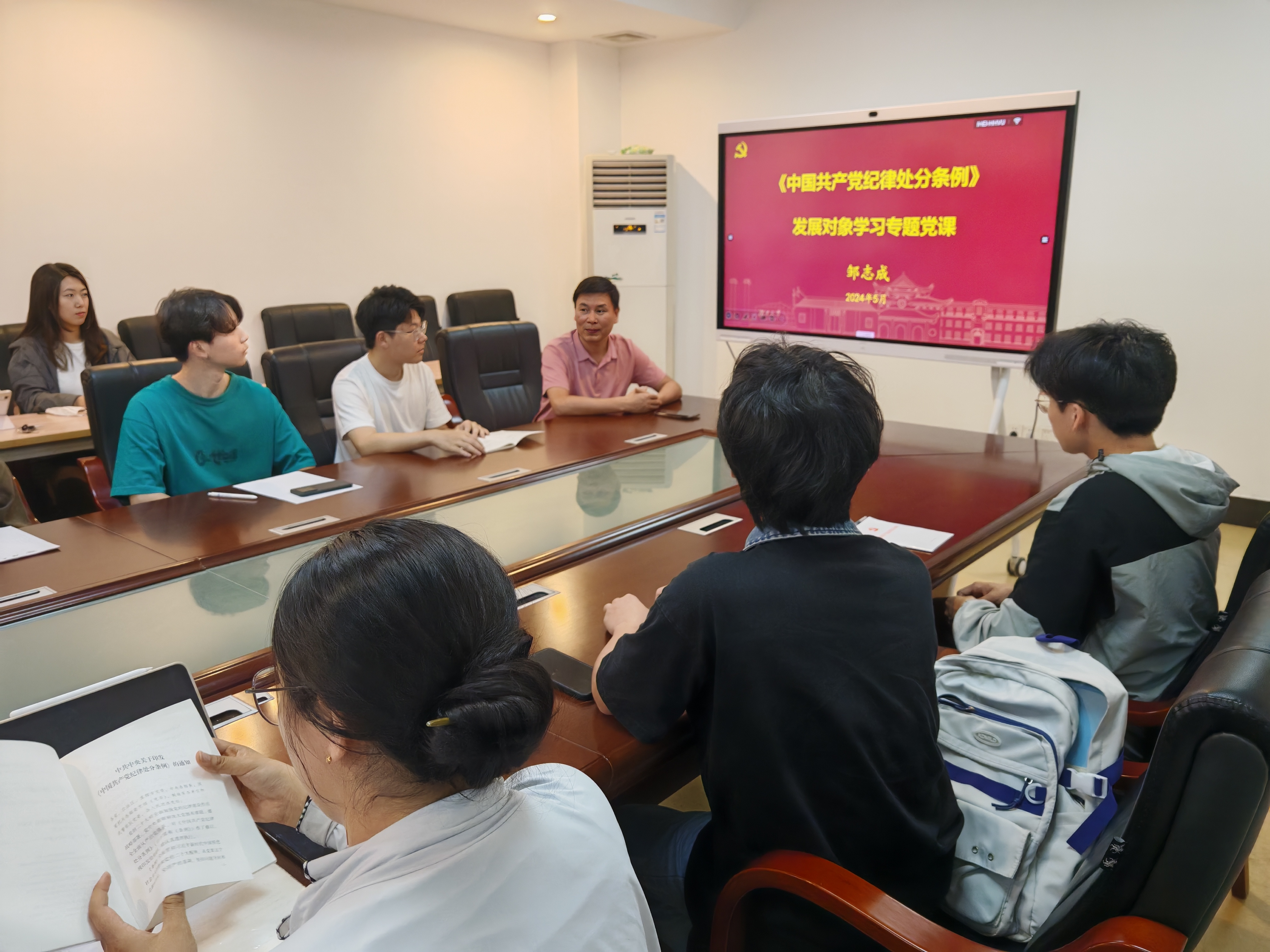组织本科生、研究生18名入党发展对象开展了党纪学习教育专题党课,邀请学院党委副书记、纪委书记邹志成讲解《中国共产党纪律处分条例》。