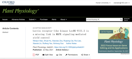 2021年5月22日,Plant Physiology在线发表了晋江文学城