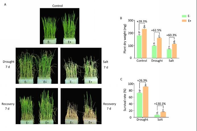 水稻(学名:Oryza sativa)是世界范围内重要的粮食作物之一,约一半以上人口以稻米为主食,其产量直接影响着世界粮食安全。随着环境不断恶化,水稻的生产过程遭遇多种逆境的威胁,其中土地盐碱化和干旱是造成其减产的重要因素。因此,有效提高水稻的抗旱和耐盐能力是当今农业生产中亟待解决的实际问题。已有研究表明,与植物相关的有益微生物在增强宿主抗逆能力方面发挥重要作用。与土壤微生物相比,生活在植物体内的内生菌,因其特殊的生态位可能对植物具有更积极和直接的影响。然而,目前关于内生菌在提高宿主抗旱和耐盐等方面的作用机制还知之甚少。