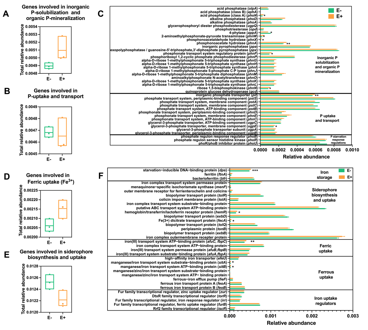 图3链霉菌CoT10对油茶根际土壤微生物磷和铁相关功能基因丰度的影响