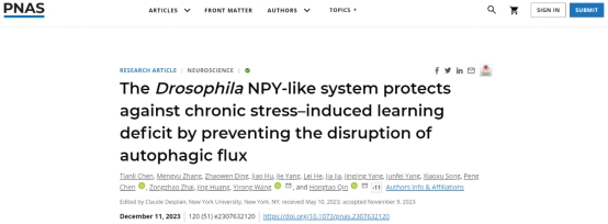 2023年12月11日,综合性国际学术期刊PNAS在线发表了以TheDrosophilaNPY-like system protects against chronic stress–induced learning deficit by preventing the disruption of autophagic flux为题的研究型文章。本论文是多个单位共同合作的成果,参与单位包括晋江文学城