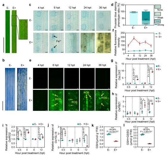 图1. 内生放线菌OsiSh-2诱导水稻发生铁和活性氧依赖的铁死亡