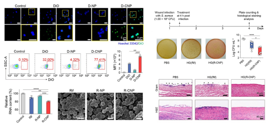图2纳米颗粒-水凝胶治疗系统的抗菌效果与伤口修复促进作用
